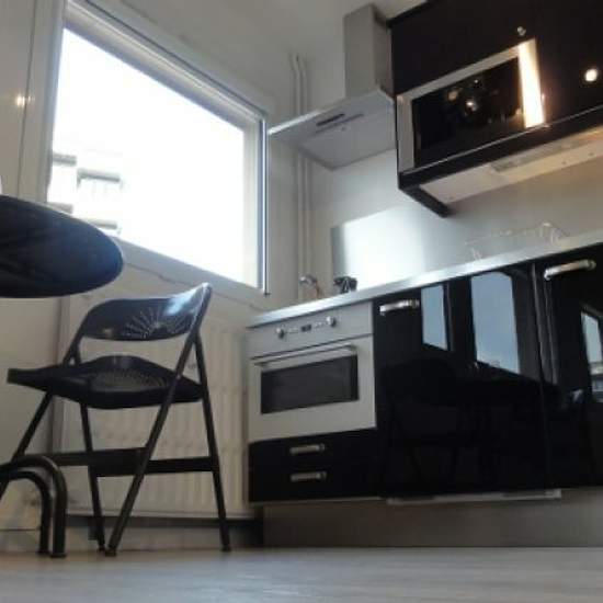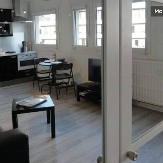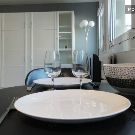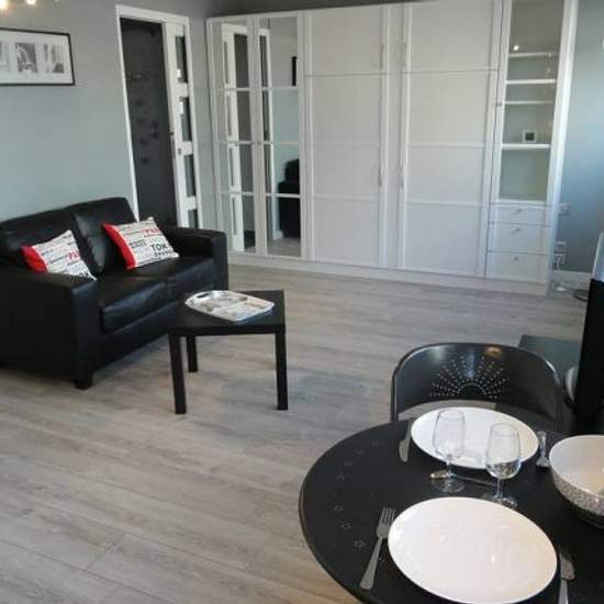 This 27 m² studio is located on the 7th floor of a secure residence with an elevator. It is close to everything (station, Lille Grand Palais, the Grand Place...). You will find: - A hallway with a separate toilet. - The living room: a sofa, a coffee table, a piece of furniture with an 80 cm flat-screen TV, a floor lamp, and a high-quality pull-out bed (mattress 140 x 200 cm) with integrated wardrobe, shelves and bedside lamps. Wi‑Fi internet. - The kitchen area: open to the living room, with a small fridge, two hotplates, a dishwasher for s...