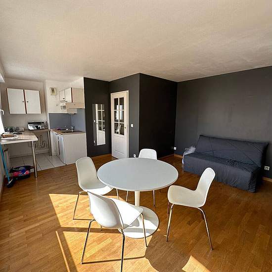 Announcement LEA698 - Contact IMMO DE FRANCE Charlotte Masse at 07.64.86.84.14 Lille Centre, rue des Jardins: furnished studio apartment of 30 m² for rent, offering a main room with a fitted kitchen (sink, refrigerator, hob, upper and lower cabinets, worktop, microwave) and a bathroom with bathtub and toilet. Includes underground parking. Available December 22.