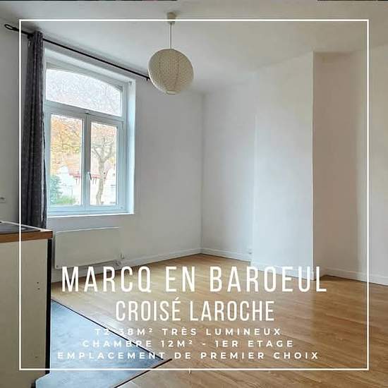 MARCQ EN BAROEUL - CROISÉ LAROCHE EN EXCLUSIVITÉ Beau T2 traversant & lumineux d'environ 38 m². Parfait état général & belle hauteur sous plafond 1ᵉ étage d'une ancienne maison divisée – Petite copro - Syndic professionnel Avenue de la Marne, secteur recherché proche Tram & commerces. Pièce de vie lumineuse avec kitchenette / 1 chambre de 12m² vue sur verdure / 1 entrée avec rangement / 1 salle de bain rénovée >> Facilités de stationnement Loyer envisageable : env 800€/mois CC Charges trimestrielles de copropriété : 250€ Taxe foncièr...