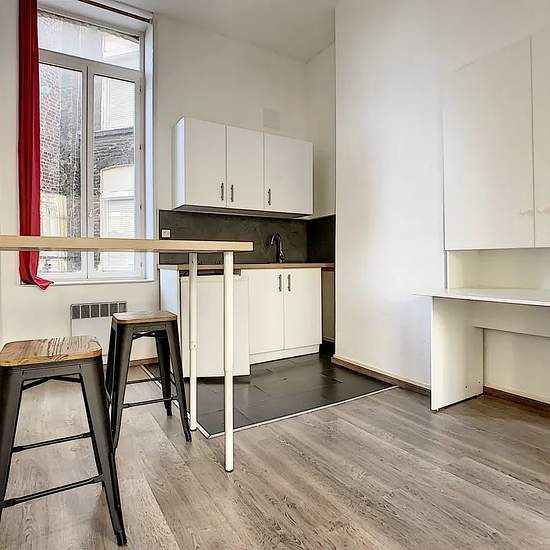 Appartement de 28 m² à louer sur Lille Appartement entièrement rénové Proximité Métro Au premier étage d'un immeuble situé rue de Fleurus (7 minutes des métros République ou Gambetta), à louer appartement entièrement rénové composé : - d'une cuisine équipée avec de nombreux rangements - d'une pièce de vie très lumineuse avec lit 140 en mezzanine - d'une salle de douches avec fenêtre - d'un WC séparé Cet appartement est meublé avec des meubles très récents. Il est disponible début Mai. Chauffage individuel électrique Double vitrage récent Par...