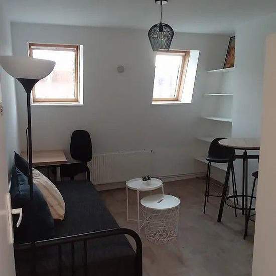 Appartement de 15 m² à louer sur Lille Studio meublé de 15 m² Situé Rue du Maire André, quartier République, à 3 minutes du métro Pièce principale avec kitchenette équipée (évier, 2 plaques, frigo, micro-ondes, rangements), coin repas, banquette-lit, bureau, étagères, armoire avec penderie Salle de bain avec lavabo, douche et WC Au 2ème et dernier étage, dans une résidence de 11 appartements Lave-linges et sèche-linges disponibles au rez-de-chaussée, pour l'ensemble des locataires Loyer : 450€ HC Charges : 50€ (chauffage, eau, entretien des ...
