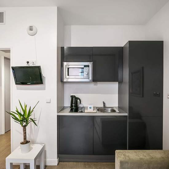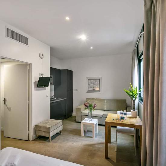 [FR] Location studio supérieur meublé de 25m² à Lourdes : 690€/mois charges comprises. Ce studio peut accueillir 4 personnes, il se compose d'un lit double ou de deux lits simples et d'un canapé lit, un coin bureau avec une TV écran plat, kitchenette entièrement équipée et une salle de bain et WC intégré. La cuisine équipée dispose notamment d'un micro-onde, d'un réfrigérateur, des plaques électriques, d'une cafetière et d'une bouilloire. De la vaisselle et des ustensiles de cuisine sont également fournis. Vous avez à disposition du linge de...