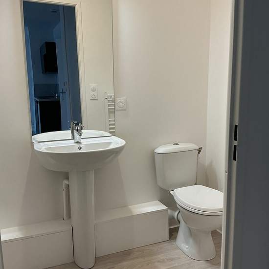 LOUVIERS, dans résidence neuve de qualité avec gardien, beau T1 de 33 m² situé au deuxième étage de la résidence avec ascenseur : entrée avec placard, cuisine aménagée et équipée d'une plaque de cuisson et réfrigérateur et hotte aspirante ouverte sur pièce de vie lumineuse, un espace couchage deux places avec rangements en dessous, salle de douche avec wc. chauffage collectif au gaz de ville, eau collective, edf individuelle. visiophone et éligible à la fibre optique logement avec des espaces communs partagés : terrain de boules, rack pour v...