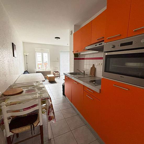 Les Orchidées *** Au centre historique de Luxeuil les Bains, en plein coeur de ville, dans un ancien immeuble, cet appartement bénéficie d'un emplacement idéal à deux pas des Thermes (250m - 3min à pied). Bien situé dans un quartier agréable, cet appartement de plain pied de 30 m² avec terrasse (et jardin commun) est composé de : - une chambre avec un lit double (140x180) - une cuisine (ouverte sur salon) bien équipée (four, plaques de cuisson, frigo, congélateur, Bouilloire, lave-vaisselle, cafetière, service d'assiette...), - une salle d'e...
