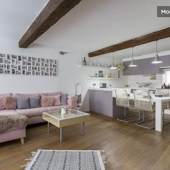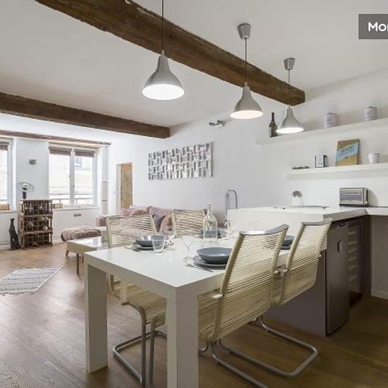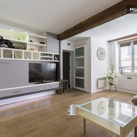 Located in the heart of the 1st district of Lyon, a few steps away from the Place des Terreaux and the Opéra Nouvel, the City Hall, in the heart of the historic center at the bottom of the famous slopes of the Croix-Rousse, it is right next to restaurants, buses, metro, public parking. This furnished apartment is composed of a very pleasant living room, with a living room (TV), sofa, dining table, internet Wifi, a fully equipped kitchen (oven, fridge/freezer, microwave, dishwasher, wine cellar), a large quiet room with a 2m double bed, a bat...