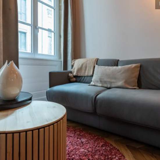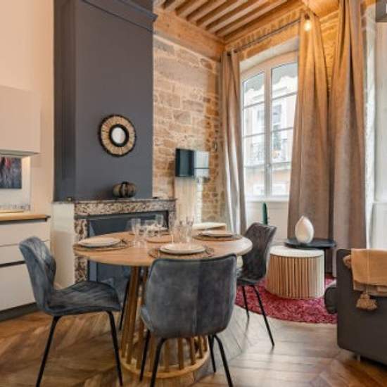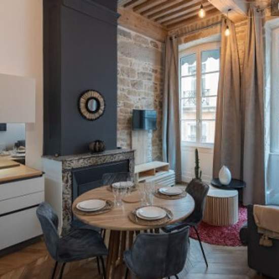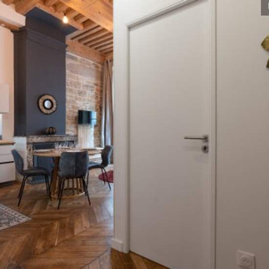 Joli appartement 1 chambre de 45 m² Spacieux, refait à neuf en 2022 Charme de l'ancien et décoration moderne A 5 minutes à pied de l'Opéra de Lyon et du métro Hôtel de Ville : lignes A et C Transport direct pour Bellecour et Croix Rousse A quelques pas des quais de Saône et du Vieux Lyon Bus direct de la Part Dieu ou métro de Perrache