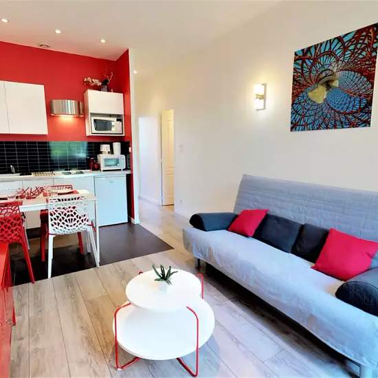 This 1-bedroom apartment is located on Boulevard Eugène Deruelle in Part Dieu. The 45 m² has a living area with a sofa bed, an equipped kitchen as well as a double bedroom with an ensuite bathroom. This apartment is just a short walk from the Gare Part-Dieu - Vivier Merle Metro station, as well as restaurants and other amenities. Details Property type: apartment Floor area: 45 m² Floor: 3rd Elevator: no Number of bathrooms: 1 Maximum occupancy: 2 (price shown is for individual occupancy. Extra tenants will be charged 150€/month/tenant) - Tow...