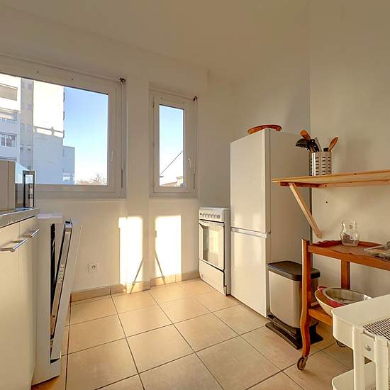 Une chambre de 10m² en COLOCATION dans un appartement T3 meublé de 56m² situé au 2eme étage, traversant. L'appartement, à partager avec une autre étudiante, comprend un salon, une cuisine équipée, une salle d'eau et un wc séparé. Le bien est équipé d'un lave vaisselle, d'un lave linge, et d'une cave en sous-sol. le loyer est de 500€ / mois + 100€ de charges pour l'eau, le chauffage, l'électricité, internet. Un dépôt de garantie de 2 mois est demandé. L'appartement est idéalement situé à 8 min du T3 Dauphiné-Lacassagne et 10 min du métro D Mo...