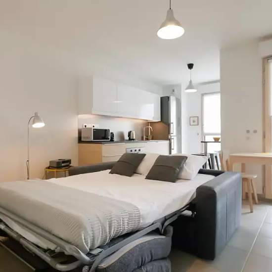 This modern 1-bedroom apartment is available to rent on Rue Michel Félizat, Arrondissement 7. This 42 m² property offers a fully equipped kitchen and open-plan living area. The bedroom offers a double bed, and is equipped with an ensuite bathroom. There is electric heating throughout, as well as access to a private balcony. Located in Arrondissement 7, this property is surrounded by a range of shops and restaurants, all within easy walking distance. Within a 5-minute walk, you can find a supermarket and pool, as well as access to the metro. ...