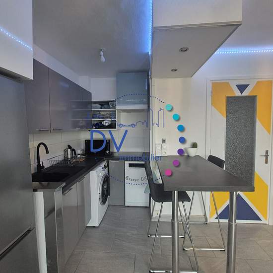 Au 277 avenue Jean Jaurès Lyon è Debourg, au pied du métro Debourg, proche tram T1/T6 , un T1 meublé de 27 m² en 5ème étage d'un immeuble avec ascenseur. Il comprend une entrée avec placard, une pièce principale avec cuisine américaine équipée ( lave linge, lave vaisselle, four multifonction, plaque induction, hotte, grand réfrigérateur avec congélateur, une salle d'eau avec wc. La pièce de vie ouvre sur un joli balcon, par une baie vitrée coulissante (récente avec isolation thermique et phonique)Confortable et très lumineux sans vis a vis d...