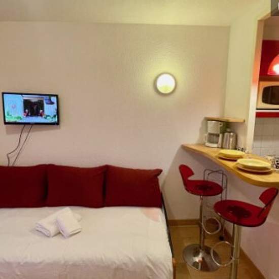 Ce studio meublé de 20m² se trouve au 1er étage (avec ascenseur) sur 5 d'un immeuble des années 90. Entièrement rénové, il comporte un canapé-lit double confortable + 1 lit une place dans la même pièce, une cuisine équipée avec un bar, un bureau et un placard. Place de parking extérieur (6 €/nuit). Cette location meublée est idéale pour une personne mais peut accommoder un couple.
