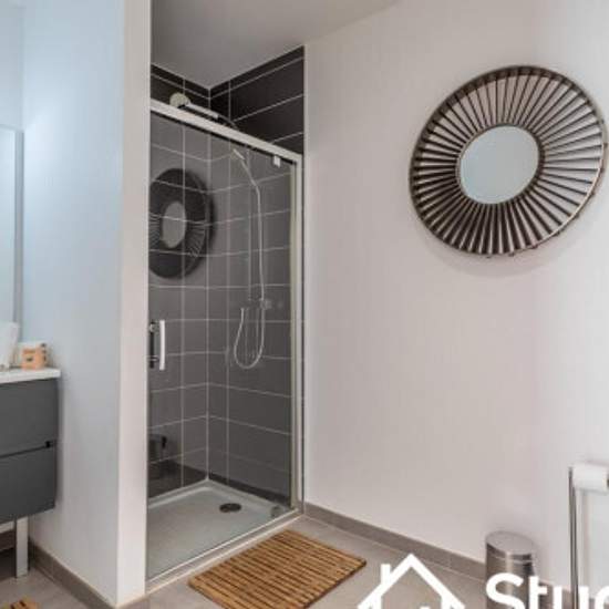 Découvrez ce studio moderne de 52 m², situé au quatrième étage d'un bâtiment art déco rénové, dans le quartier dynamique du 2ème arrondissement de Marseille. Appréciez l'élégance et le confort de cet espace idéal pour un séjour urbain. Avec une surface de 52 m², cette location se compose de : - une grande pièce à vivre lumineuse avec un lit double 160x200 cm et un espace repas, - une cuisine séparée, parfaitement équipée (machine à café, grille-pain, mixeur, bouilloire, four micro-ondes, plaques de cuisson, lave-vaisselle, réfrigérateur, con...