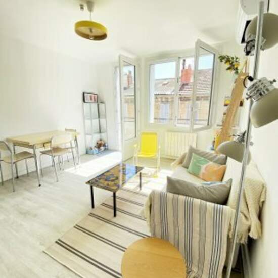 Air-conditioned 2-room flat, completely refurbished and decorated to a high standard. Location: - Quiet building and street. - On the 4th floor (top floor) with plenty of natural light. - In the immediate vicinity of La Friche / Pôle Média Innovation / Mucem (Conservation Centre) / CICRP / Villages Clubs du Soleil - Market and numerous shops The flat : - Open-plan living room with open-plan kitchen. - Balcony over the entire flat. - Reversible air conditioning. - Bar and dining table for 4. - Unlimited high-speed WIFI internet access. - Bedr...