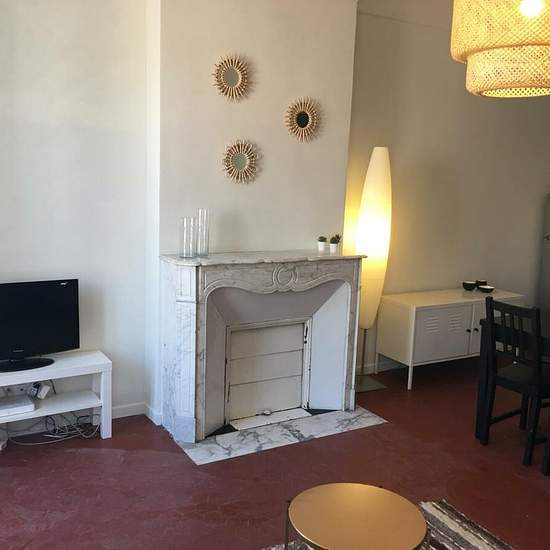 Spacieux T2 en location meublée à Marseille au cœur du Quartier très sympathique des Cinq Avenues. Il est entièrement équipé (écran plat, wifi, micro-ondes, lave linge...) Cet appartement possède le charme de l'ancien avec ses hauts plafonds, sa cheminée et ses tomettes. Il se compose d'une grande pièce à vivre avec cuisine équipée ouverte, coin salon et salle à manger, d'une belle chambre avec placard et d'une salle d'eau. Le quartier est très animé, familial ou il fait bon vivre. Sur place vous trouverez toutes les commodités : cinéma, mar...