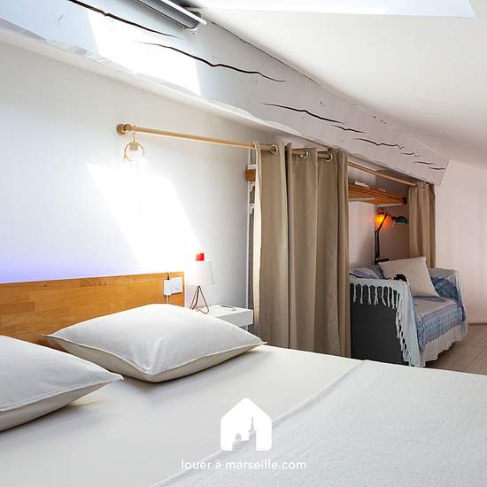 Joli duplex, très lumineux, spacieux, dans le quartier de Saint-Pierre, exposé EST. L’appartement se compose : - d’un salon avec climatisation réversible, canapé convertible pour deux personnes 140 cm, TV, fibre internet avec box Devialet, - d'une cuisine ouverte entièrement équipée (four, plaque vitro céramique, micro-ondes, hotte aspirante, détecteur de fumée, cafetière, lave-vaisselle, réfrigérateur, congélateur séparé…), - d’une salle d’eau, avec douche à l’italienne, - WC - d'une chambre à l’étage avec lit 180 cm, vélux, canapé, nombreu...