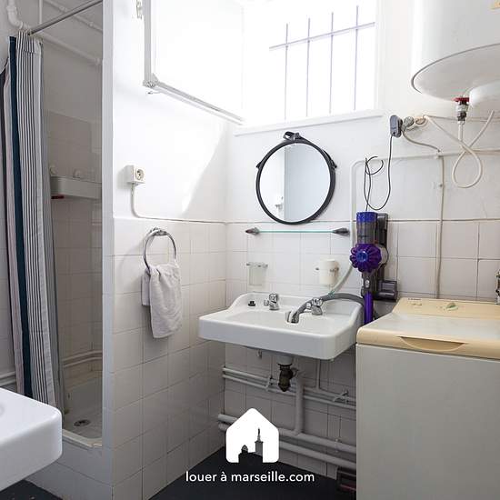 Charming renovated maid's room overlooking Notre Dame de la Garde, located on the 8th floor with an elevator in a prestigious condominium. It is equipped with a kitchenette featuring a hot water tank, hot plates, a tabletop fridge, a toaster, a kettle, a Dolce Gusto coffee maker, and dishes. There is a two-seater convertible sofa (140 cm), a Dyson fan, a television, electric roller shutters, and collective heating. The sanitary facilities are located on the landing, in immediate proximity to the apartment, and are shared with another mai...