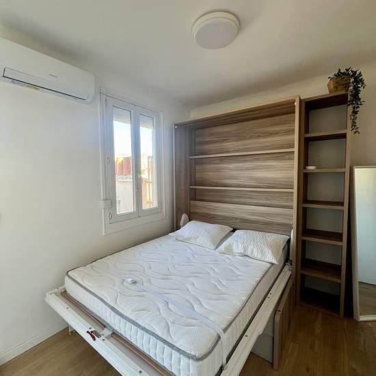 Studio of 13m² on the top floor of an old building, very well maintained and secure, consisting of: an entrance with storage, a living area with a foldable bed that transforms into a sofa, a fully equipped kitchenette, a bathroom with a toilet, as well as a very large 40 m² terrace with an open sky view of Notre Dame. The apartment has many advantages: double glazing, reversible air conditioning, electric shutters. Close to amenities: shops, public transport, schools...
