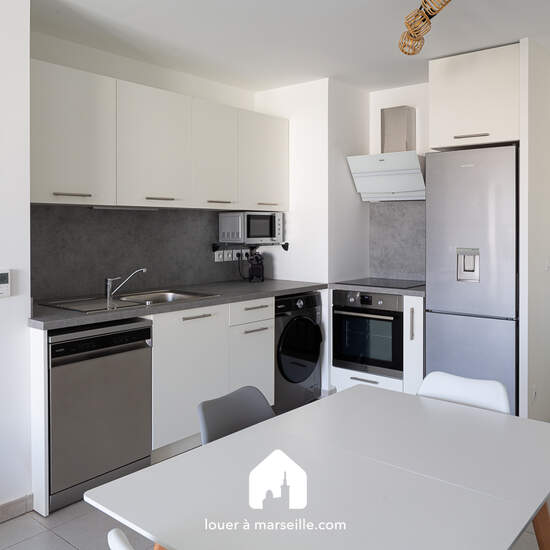 Agréable T2 dans le quartier de Mazargues au sein d'une résidence neuve, avec terrasse de 10 m² à ciel ouvert et sans vis-à-vis. Cet appartement est composé d'une pièce à vivre lumineuse avec cuisine ouverte entièrement équipée, une chambre avec lit 160 cm, et une salle d'eau avec douche à l'italienne. Un box fermé au sous-sol est inclus, ainsi que l'accès à un local à vélos et un emplacement commun pour 2 roues. METRO : Rond-Point du Prado BUS : A 2 minutes à pied 22 et 22S - L'Aillaude