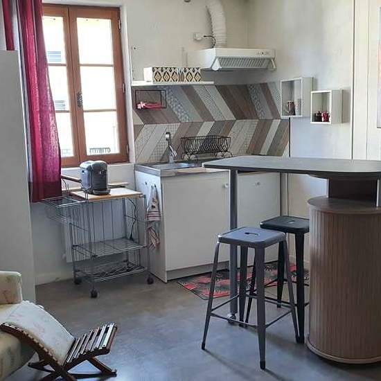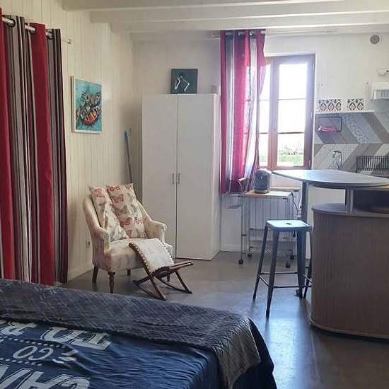 Chambre aménagée en studio. Coin nuit et coin repas équipé. Salle de bain et wc indépendants. Télé, wifi. L'accés est indépendant et se trouve au dessus du garage de la propriétaire. Possibilité de garer un 2 roues dans le garage. Le parkiing voiture est devant le garage. Toutes les charges ( electricité chauffage, wifi, eau ) sont prises en charge par le propriétaire.