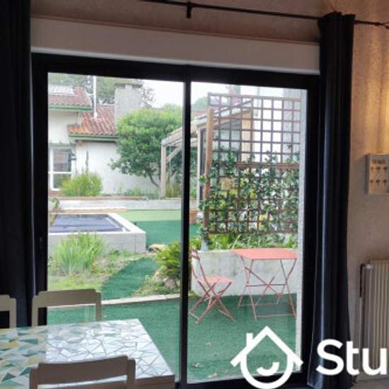 TOUTES (vraiment toutes charges comprises) ! Disponible soit pour toute l'année scolaire (septembre -juin) soit par durée de 6 mois. - Studio meublé (cuisine séparée) totalement indépendant et au calme dans l'aile d'une grande maison. - Quartier plaisant du parc Féau, Mérignac centre, à côté du bois du château et de tous les commerces et transports, aux portes de Bordeaux et des campus de Talence et Pessac. Proche de l'école d'ostéopathie à Mérignac. - Récemment rénové, terrasse privative vue piscine (accès possible sur demande), cuisine sép...