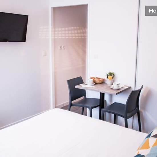 Come discover Bordeaux, its heritage, its history, its museums and gardens. You can also travel around the region to the discovery of the vineyards. If you come for a business trip, you will appreciate the location of our residence, located a few minutes from Bordeaux-Merignac airport and close to business space Espace Mérignac Phare. Composed of a room with double bed (160 * 190) and fully equipped kitchen, a bathroom with bath and toilet, this is studio 20sqm. It can accommodate 2 people. The kitchen has a microwave, refrigerator, ceramic ...