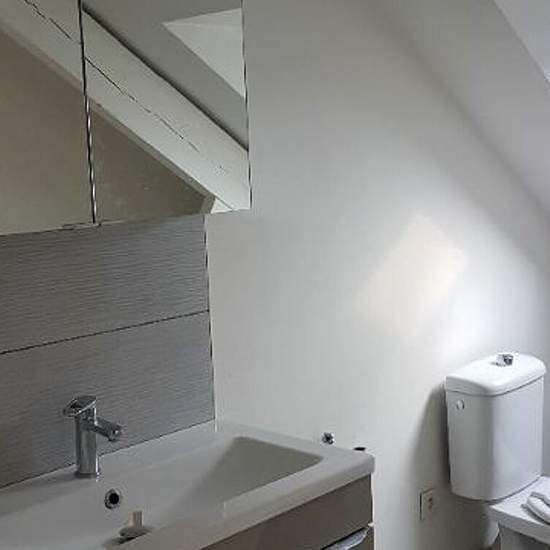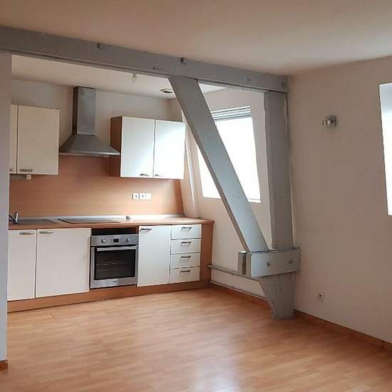 Appartement Merville 2 pièce(s) 38.82 m2. Appartement en duplex comprenant une cuisine aménagée et équipée (four, plaques, hotte) ouverte sur séjour, à l'étage un bureau ou petite chambre mansardée, une salle d'eau (douche neuve) avec WC. Les charges comprennent l'eau froide, l'électricité et l'entretien des communs. Disponible le 15 MAI