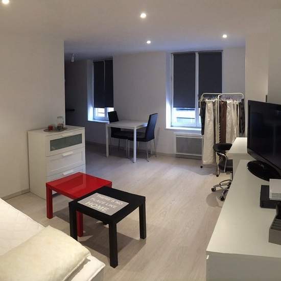 Appartement composé d'une entrée -d'un séjour, une table 2 chaises une commode-une table basse- une cuisine entièrement équipée mise a disposition- meubles de rangement-plaque de cuisson-hotte,réfrigerateur salle de bain douche-WC, radiateur sèche serviette Double vitrage chauffage individuel électrique- interphone disponible 28 février Garanties sont demandés garantie, visale possible pour certaines locations contact