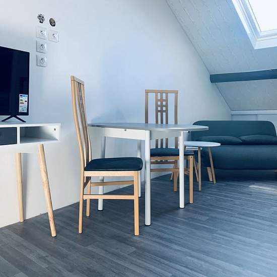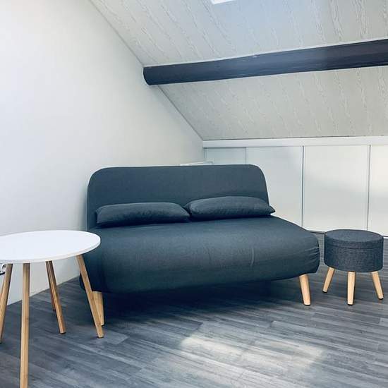 Studio - 15m ². STUDIO MEUBLE, neuf tout équipé, en frontière. Idéalement situé à la frontière belge /luxembourgeoise et de toutes commodités, l'agence Marine Immobilier Location-Gestion vous propose ce beau studio meublé situé au deuxième étage dans un petit immeuble comprenant : * Une entrée (en étage 1) avec placards de rangements, une pièce de vie avec cuisine intégrée et équipée (four, plaques, hotte, réfrigérateur combiné congélateur et micro-onde), placards de rangements sous combles. * Une salle d'eau avec cabine de douche, vasq...