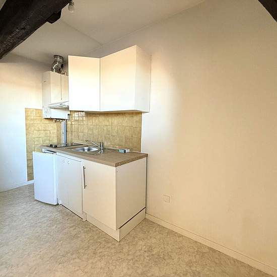 Montauban, centre ville, quartier les Consuls, appartement de type 1 au 3è étage d' un bel immeuble du début XIXème, il dispose, d' une entrée, une pièce principale avec joli point de vue, un coin cuisine séparé et équipé, salle de bains et wc séparés Chauffage au gaz. Loyer : 390 € CC Dépôt de garantie : 350 € Honoraires : 233 €.