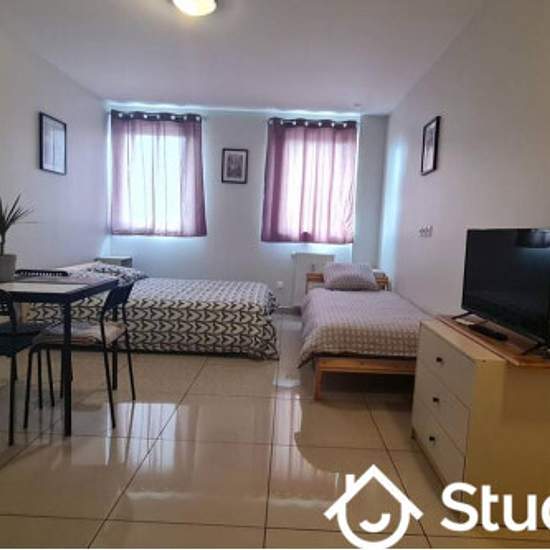 Charmant studio étudiant au 2ᵉ et dernier étage d'une résidence récente, calme et sécurisée, avec laverie à chaque étage. Appartement entièrement équipé : kitchenette (frigo, plaques, évier, hotte, micro-ondes, rangements), salle d'eau moderne (douche à l'italienne, meuble vasque, miroir, WC suspendu). Séjour lumineux avec canapé convertible, espace bureau, table basse, nombreux rangements et coin-repas (table et 4 chaises). TV TNT & Netflix inclus, Wi-Fi, linge de maison et ustensiles fournis. Proche commerces et transports. Updated on 16/1...