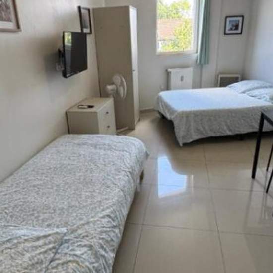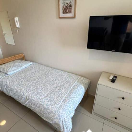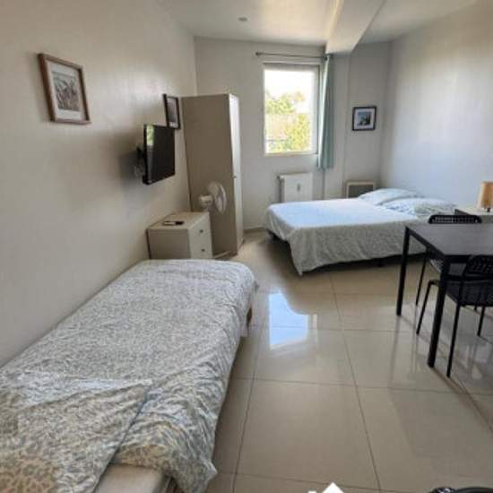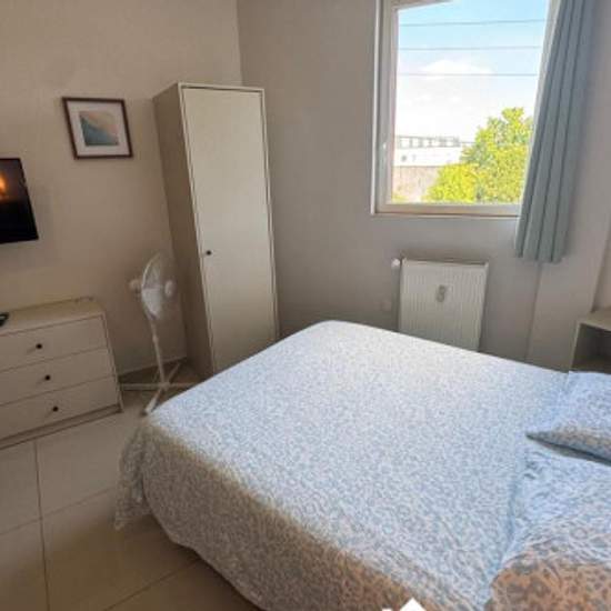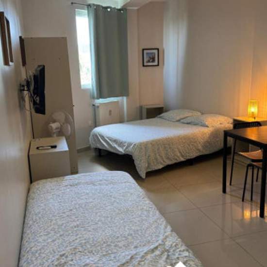 Charmant studio étudiant au 2ᵉ et dernier étage d'une résidence récente, calme et sécurisée, avec laverie à chaque étage. Appartement entièrement équipé : kitchenette (frigo, plaques, évier, hotte, micro-ondes, rangements), salle d'eau moderne (douche à l'italienne, meuble vasque, miroir, WC suspendu). Séjour lumineux avec canapé convertible, espace bureau, table basse, nombreux rangements et coin-repas (table et 4 chaises). TV TNT & Netflix inclus, Wi-Fi, linge de maison et ustensiles fournis. Proche commerces et transports. Updated on 19/1...