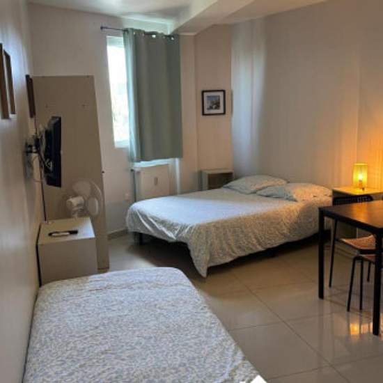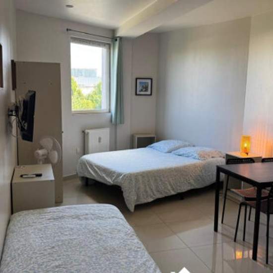 Charmant studio étudiant au 2ᵉ et dernier étage d'une résidence récente, calme et sécurisée, avec laverie à chaque étage. Appartement entièrement équipé : kitchenette (frigo, plaques, évier, hotte, micro-ondes, rangements), salle d'eau moderne (douche à l'italienne, meuble vasque, miroir, WC suspendu). Séjour lumineux avec canapé convertible, espace bureau, table basse, nombreux rangements et coin-repas (table et 4 chaises). TV TNT & Netflix inclus, Wi-Fi, linge de maison et ustensiles fournis. Proche commerces et transports. Updated on 20/0...