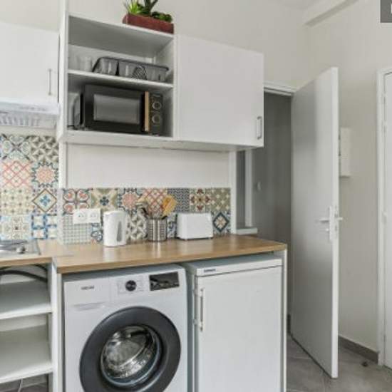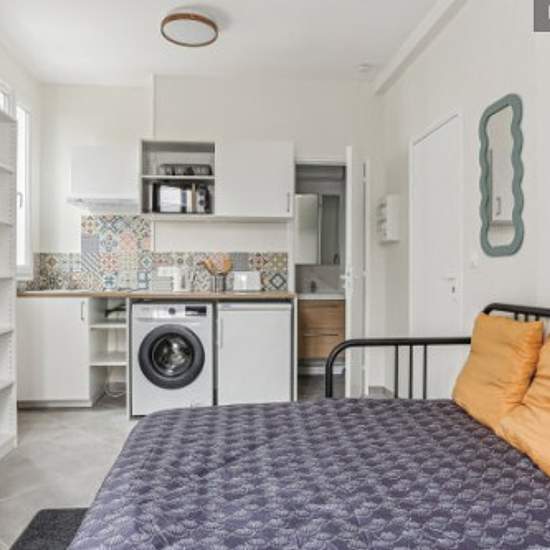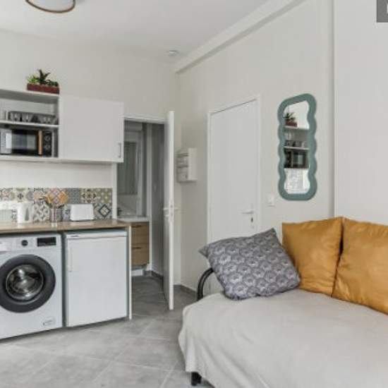 Bas Montreuil, limite Vincennes, rue de la République, appartement de 18 m² meublé et intégralement neuf. Proche transports : Métro ligne 9 station Robespierre (3 min) – Métro ligne 1 station Saint-Mandé (7 min) – RER A station Vincennes (12 min) – Tramway 3B station Porte de Montreuil (10 min). 1er étage, sans ascenseur, dans un petit immeuble calme. L'appartement comprend : - 1 séjour avec un espace repas, une cuisine équipée, un canapé-lit et des rangements, - 1 salle d'eau avec douche et WC. Toutes les fenêtres sont en double vitrage. Ch...