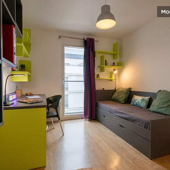 The residence is recent (opened in September 2012) and is 300m from the Tram 2 and C5 lines. It is also 600m from the center of Nantes (just opposite the school of architecture, fine arts, and the faculty of medicine). Various supermarkets are less than 200m from the residence (Lidl, Spar, Carrefour City...). Each flat is equipped with a kitchen (microwave, fridge, hotplates, various storage units), pull-out bed, kitchen table, chairs, desk, shelves, dressing room, bathroom (Italian shower and suspended toilet), videophone. WIFI INCLUDED Gym...