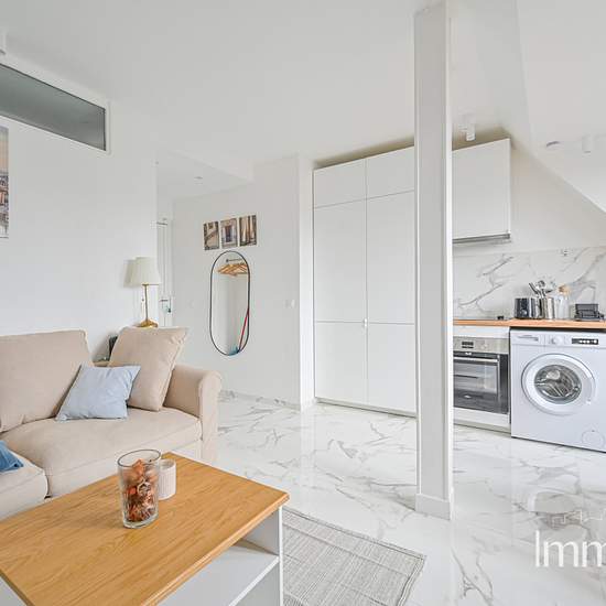 Boulevard des Sablons, Métro les Sablons (ligne 1), Neuilly ! Au septième étage avec ascenseur (de service) d'un quartier sécurisé et très prisé, venez découvrir ce sublime studio en parfait état et avec une vue à couper le souffle ! Il se compose ainsi; une entrée avec placard, une belle pièce à vivre avec cuisine ouverte aménagée et équipée (lave-linge) et une salle d'eau avec wc. L'accès au studio se fait via le sous-sol de l'immeuble. Vous serez séduits par le quartier, l'état du bien, la luminosité et la vue sur le bois et la Tour Eiffe...