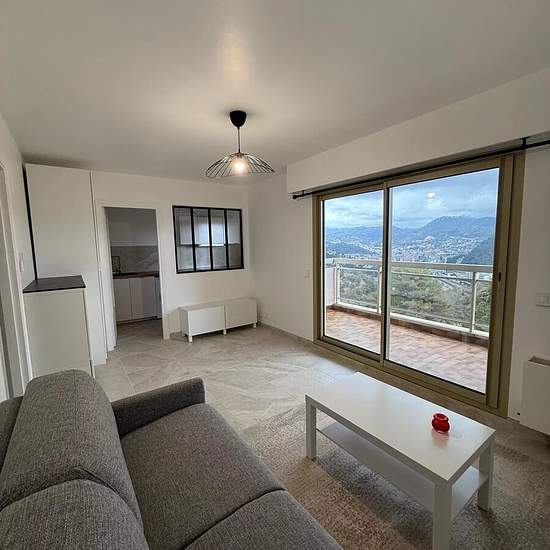 Les agences CIMIEZ RESIDENCES vous proposent ce grand studio, idéalement situé au dernier étage d'une copropriété sécurisée avec parc et gardien. Ce grand studio entièrement refait à neuf comprend: une entrée avec placards, une salle de douche, un belle pièce à vivre lumineuse, une cuisine indépendante entièrement équipée. Une terrasse offre une vue sur parc et les collines niçoises Les atouts : entièrement refait à neuf, mobilier de qualité, et une grande terrasse avec vue. Un garage fermé est proposé en option.