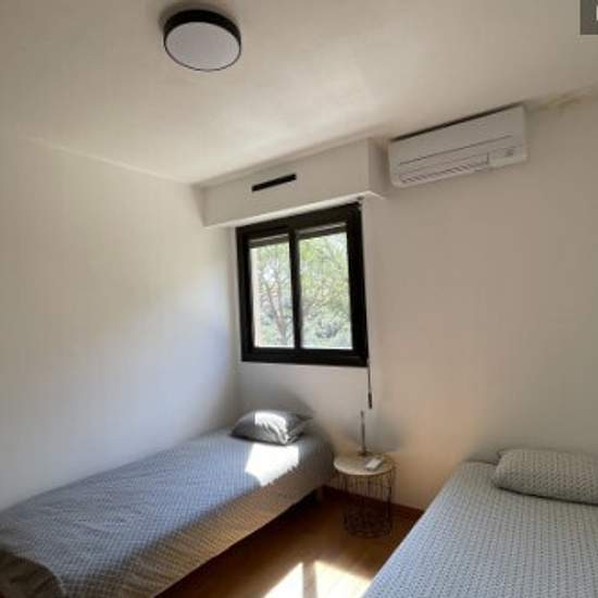 Bel appartement refait à neuf, dans le secteur calme et résidentiel du Fabron, dans une résidence avec piscine, comprenant : - 1 grande entrée avec armoire - 1 cuisine aménagée avec lave-vaisselle - 1 salon orienté ouest avec canapé lit donnant sur 2 terrasses dont l'une avec aperçu mer - 1 chambre avec lit double donnant sur la plus grande terrasse, équipée d'une grande armoire - 1 chambre avec 2 lits simples, équipée d'une grande armoire - 1 salle de bain avec une douche italienne spacieuse - 1 WC séparé - 1 grand dressing face à la chambr...