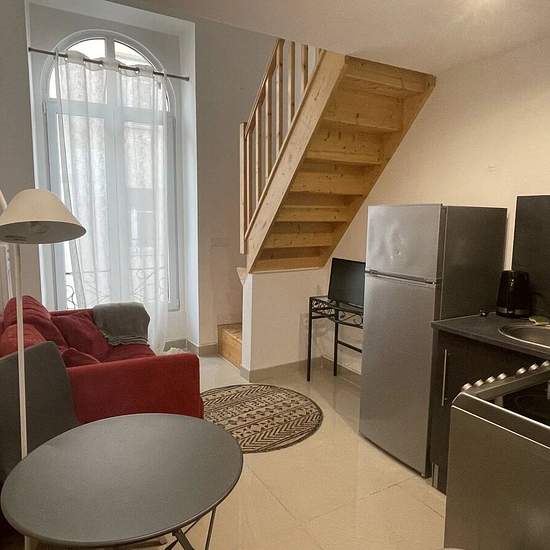 Ideally located in the heart of Nice, a stone's throw from Place Masséna and the shopping avenue Jean Médecin, on the top floor of a well-maintained building, duplex studio comprising: a living area with fitted and equipped kitchenette, a mezzanine sleeping area and a shower room with WC. Rent €682; charges €23 (cold water included); TEOM €7. Available from January 9 — view without delay! Agency fees: €13/m².