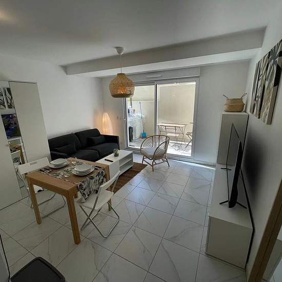 Studio clmatise avec terrasse et jardin en location longue duree : nous vous proposons avec climatisation + terrasse + jardinet privatif un superbe g studio meuble de 25.50 m² dans un immeuble neuf situe au coeur du quartier liberation, ideal pour ses commodites de transports, de commerces : vous apprécierez une belle cuisine entièrement équipée avec plaques, four, hotte. Une télévision de 55 pouces. Une grande salle d'eau avec lave-linge. Un vrai confort de vie le plus : la situation. La climatisation. La terrasse.