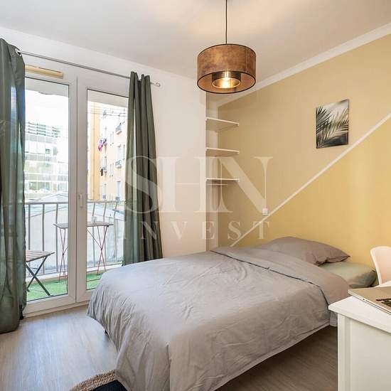 COLOCATION MEUBLEE 5 CHAMBRES Nb: pour toutes visites veuillez envoyer votre dossier Complet à: EMAIL Chambre dans une colocation meublée dans un appartement récemment rénové, au 2ème étage avec ascenseur. Proche de tous types de transport: tramway ligne 2, lignes de bus multiples, gare Nice St Augustin L'appartement est composé de 5 chambres, d'une cuisine/salle à manger, d'une salle de douche avec un WC et d'un WC indépendant. Chambre 1 : LOUEE / NON DISPONIBLE (9.97 m2) Loyer : 540€/mois charges comprises Entièrement équipée (lit, bureau,...