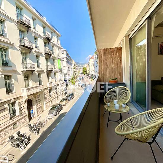 NICE MUSICIENS / PLACE MOZART Beautiful renovated studio with terrace, 31.4 m². High-end features Ideally located in the heart of the sought-after Musicians quarter, a stone's throw from Place Mozart and the Promenade des Anglais, this magnificent 31.4 m² studio is on the 2nd floor with elevator of a secure, well-maintained residence. Fully renovated with quality materials and contemporary decor, it offers an elegant, functional and bright living environment: - Beautiful main room with a high-end motorized fold-away bed and plenty of storage...
