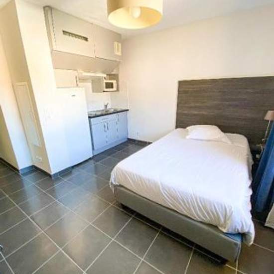 Furnished and fully equipped apartment in a recent and secure residence. A manager of residence is on-site for your peace of mind. The residence is very well located : well served by public transport (the bus stops 6 and 88 are in front of the residence, the bus stops 16, 89 and 90 are 3 minutes walk) and close to shops (supermarket "LIDL" 200 metres). You are only 10 minutes by bus from the historic centre of the city. Composed of a cooking area with kitchen, of a sleeping area with a double bed (120cm) and a desk, and of a bathroom with sh...