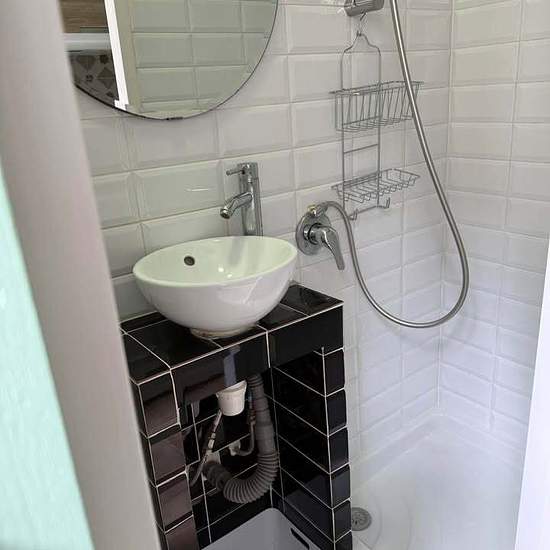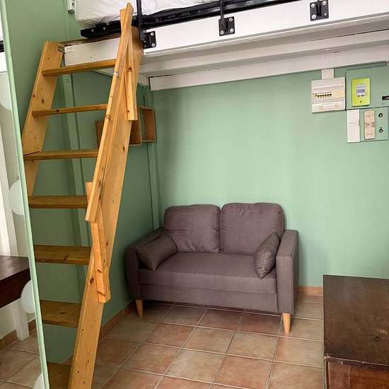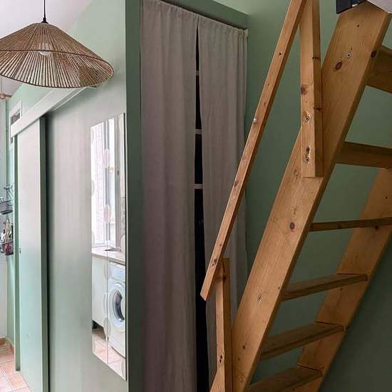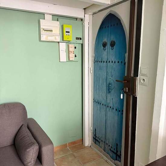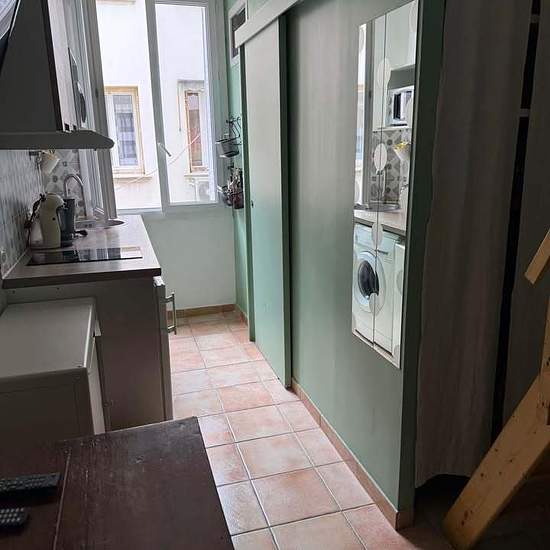 Furnished studio in a courtyard. Short-term rental, 1 to 6 months. The price includes electricity, water and Wi‑Fi. Entirely repainted. Air conditioning. Espresso machine. Washing machine. Refrigerator. Microwave. TV. Wi‑Fi. Bed 140 x 190 cm.