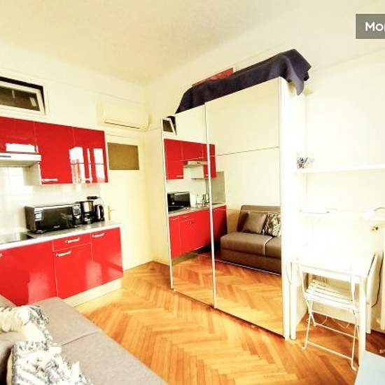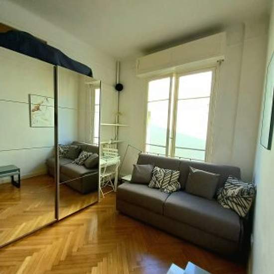 My studio is ideally located in the heart of Nice, in the Golden Square. It has a surface area of 15m² and is located on the 5th floor of an architect-designed building, classified 1930 (with lifts). Quiet and very bright, it is the ideal place to discover Nice, at the foot of tramways 1 and 2: 5 minutes from the SNCF station and 20 minutes from the airport. Small and very well equipped, with high quality bedding, ideal for a couple or a single person. You will find a supermarket at the foot of the building. Services included in rent & char...