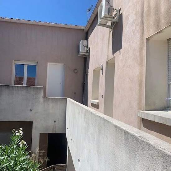 Nîmes, sis 13 rue Descartes, à 14mn à pied de l'établissement d'Alzon, P2 en duplex dans petite copropriété. Appartement comprenant au rdc une pièce à vivre avec cuisine ouverte, plaque de cuisson et frigo top, un wc. À l'étage une chambre avec salle d'eau ouverte. Climatisation. Loyer 552€ c. c (communs et eau froide).
