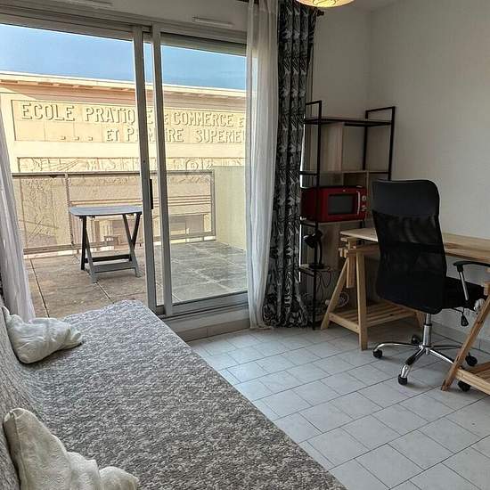 Appartement À Louer. Nîmes, 24 rue Dhuoda, dans immeuble sécurisé, studio meublé de 16m² comprenant une kitchenette, une pièce à vivre, une salle d'eau avec WC. Terrasse. Loyer 410€ c.c (commun et eau froide) Disponible le 07/02/2025