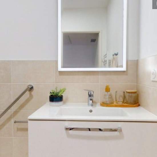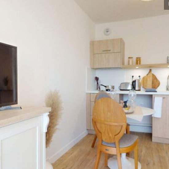 Cet appartement exceptionnel, neuf et décoré avec raffinement se situe au 2ème étage d'une résidence extrêmement calme et sécurisée. L'appartement est très lumineux. Il peut accueillir une personne et comprend une kitchenette tout équipée (réfrigérateur, four micro-ondes, plaques électriques, cafetière électrique, bouilloire, vaisselle et ustensiles de cuisines), une belle salle de bain avec douche à l'italienne ainsi qu'une télévision écran-plat.