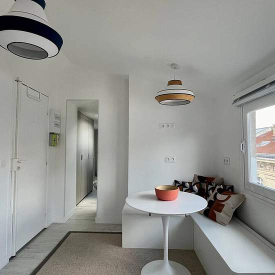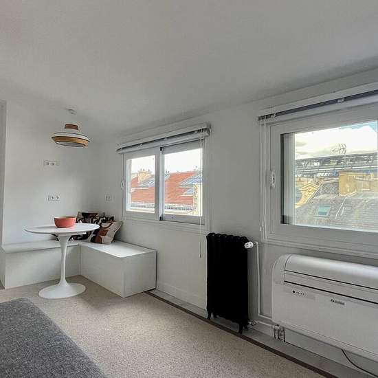 Rue du Jour, in a beautiful old building, on the top floor, a large studio fully renovated, perfectly equipped and furnished. It comprises a lovely living room with an open-plan kitchen, a study/dressing room with plenty of storage space, and a nice shower room with toilet. The apartment is sunny and quiet. It offers pleasant views. Heating is communal (included in the charges), and the apartment also has air conditioning.