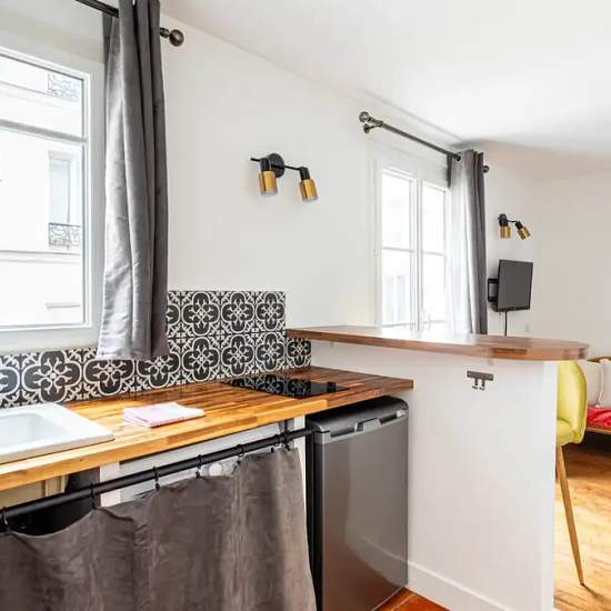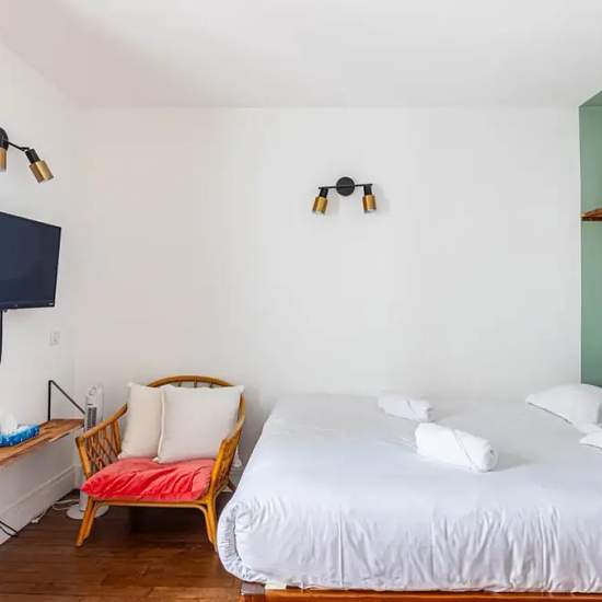 This studio apartment in the 2nd arrondissement is perfect for couples looking for a pleasant stay in Paris. The property is close to various attractions (e.g. the Louvre Museum, Sainte-Chapelle), good restaurants and shops, and Strasbourg-Saint-Denis station is just 2 minutes away, so guests can easily travel and explore the city! The space Welcome to my studio! Situated on the 2nd floor without an elevator, this lovely and tastefully decorated 20 m² studio has everything you need for a comfortable stay! This studio is designed with open l...