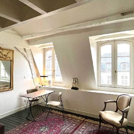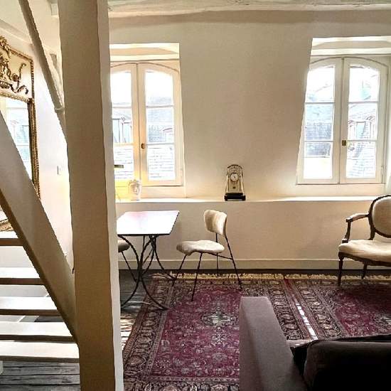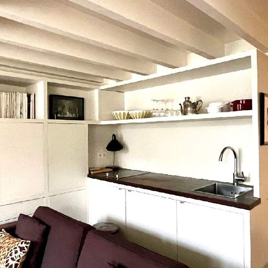 3ème Arrdt - Archives ATTENTION : BAIL CODE CIVIL (Bail société, mobilité ou résidence secondaire). Niché au 3ème et dernier étage d'un bel Hôtel Particulier de la très confidentielle rue de Braque, parfaitemant au calme, joli faux 2 pièces, loué meublé. Il comprend : une entrée/ bureau, une agréable pièce de vie plein sud, avec cuisine ouverte, une salle de douche avec toilettes. En mezzanine, une chambre avec nombreux rangements, éclairée par la lumière zénithale. Porte blindée. Radiateurs électriques bain d'huile réglés par termostat cent...